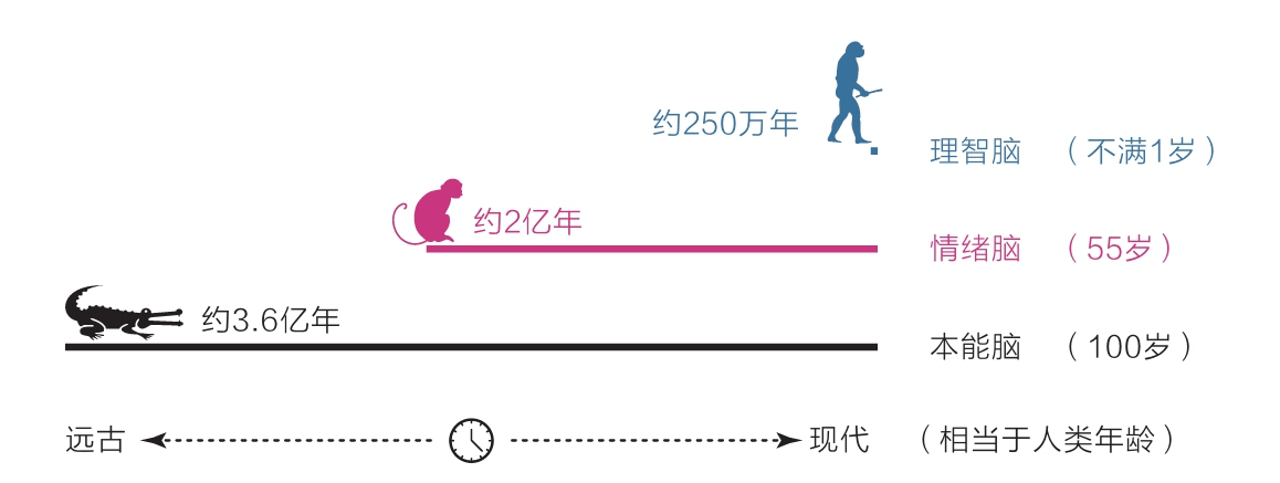 本能脑和情绪脑的基因一直被生存压力塑造着,所以它们的天性自然成了目光短浅、即时满足。